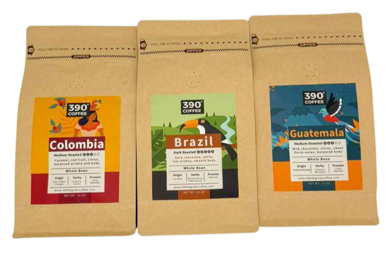 A: Each coffee is versatile. For Brazil, espresso and French press highlight its chocolate and nutty depth. Guatemala works beautifully in pour-over for its balanced citrus and florals. Colombia shines in both filter and espresso, thanks to its caramel sweetness and citrus brightness.